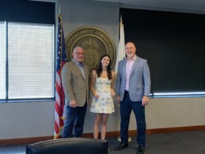 On August 1, 2025, Mike Sanders, DEAFNA VP South Central Region, presented Madison Ward her scholarship check at the Rocky Mountain Field Division in Denver, Colorado. Present during the presentation was Special Agent in Charge, Jonathan C. Pullen, and members of Madison’s family. Those attending virtually were Marshall Fisher, John Gilbride, and Cheryl Martinez (Luis Martinez Jr.’s widow). Madison will be attending the University of Utah pursuing a degree in Marketing with a minor in Dance.