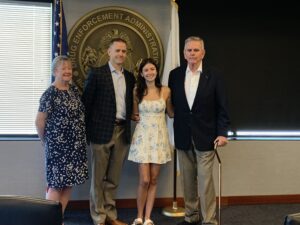 (Left to Right): Kathy Ward, Madison’s Grandmother; Matthew Ward, Madison’s Father; Madison; and Thomas P. Ward, Madison’s Grandfather and retired DEA ASAC